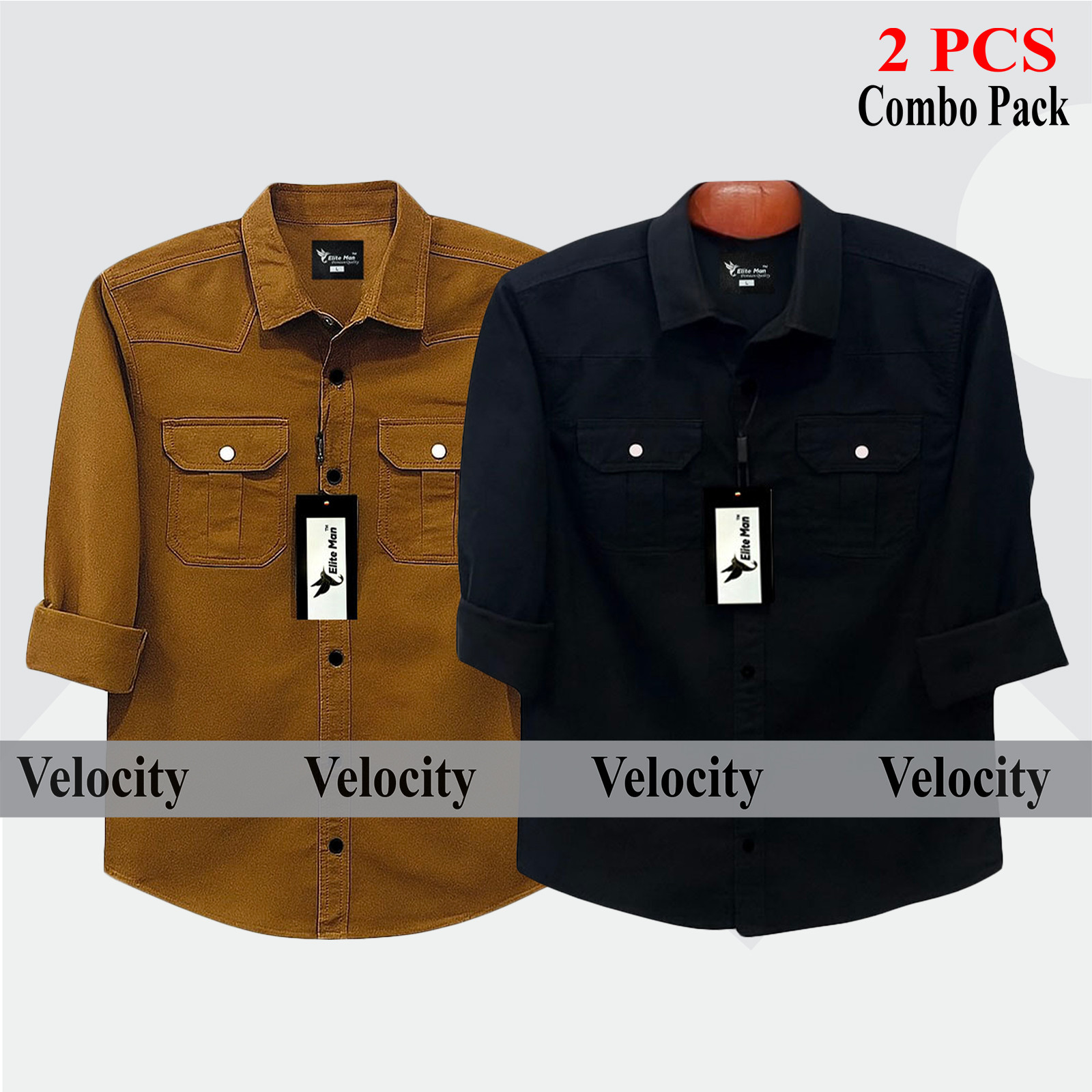 2 Pcs Combo Premium Quality Double Pocket Shirt - Black & Banson.