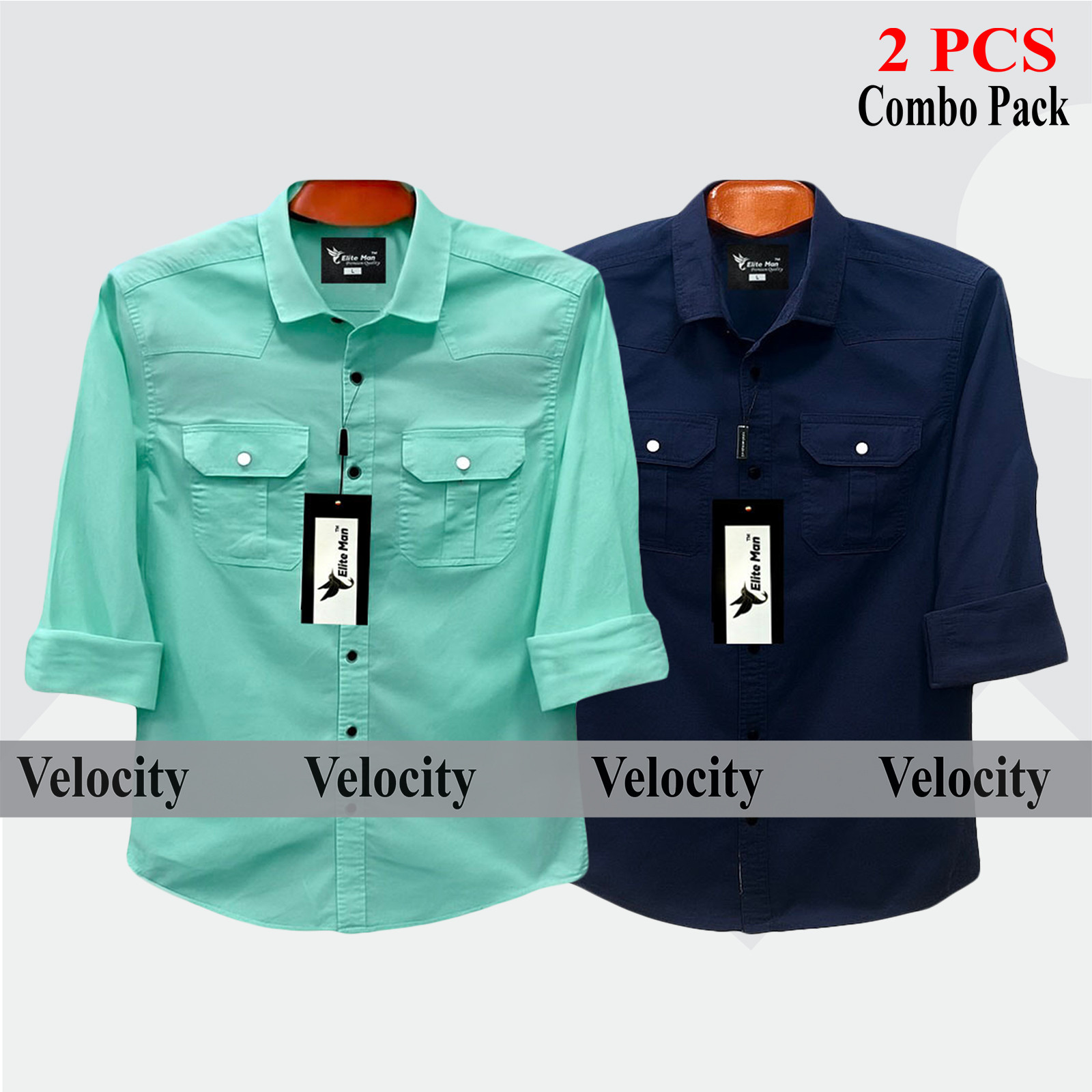 2 Pcs Combo Premium Quality Double Pocket Shirt - Nevy Blue & Pest.
