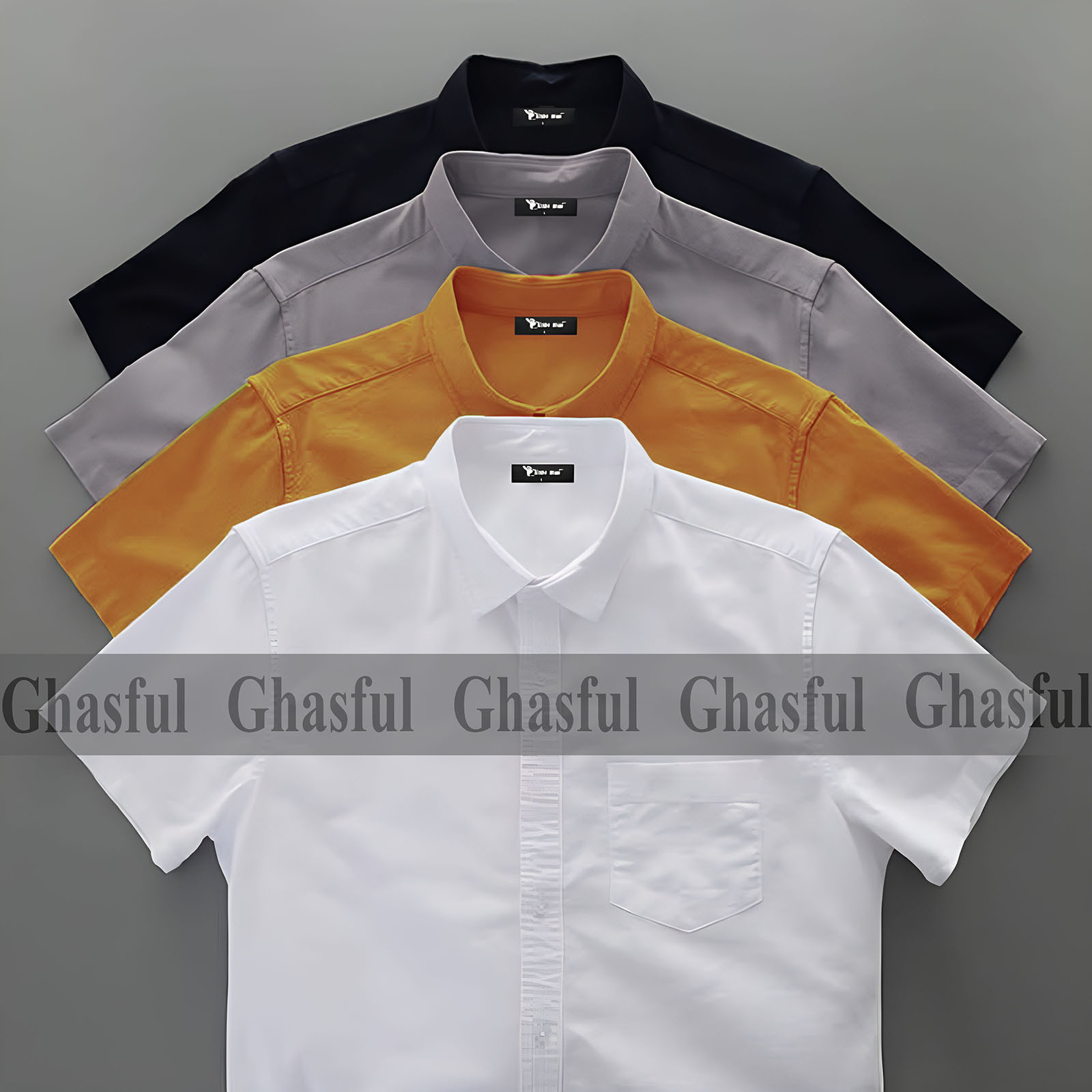 Oxford Cotton Febric Short Sleeve Shirt _ White _Kathali _Ash_Navy Blue