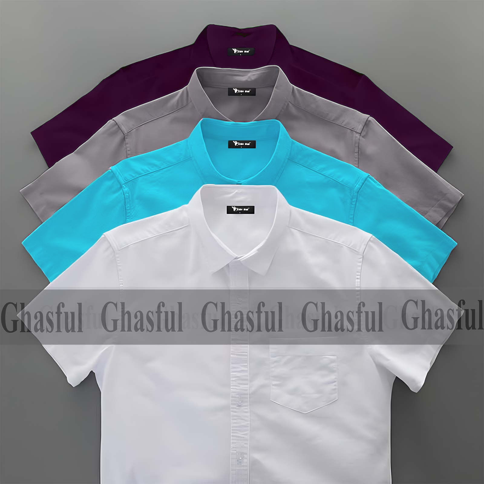Oxford Cotton Febric Short Sleeve Shirt _White_ Pest_Ash _Purpale