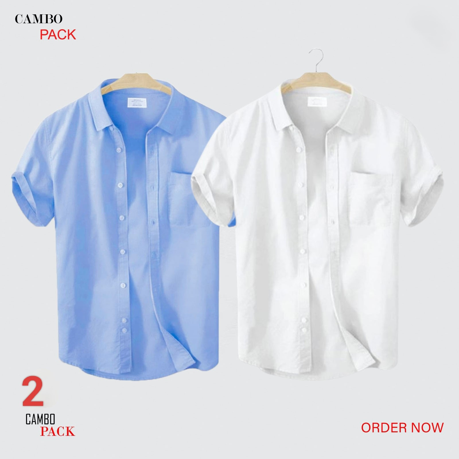 Premium Quality Short Sleeve Shirt _White & Sky Blue