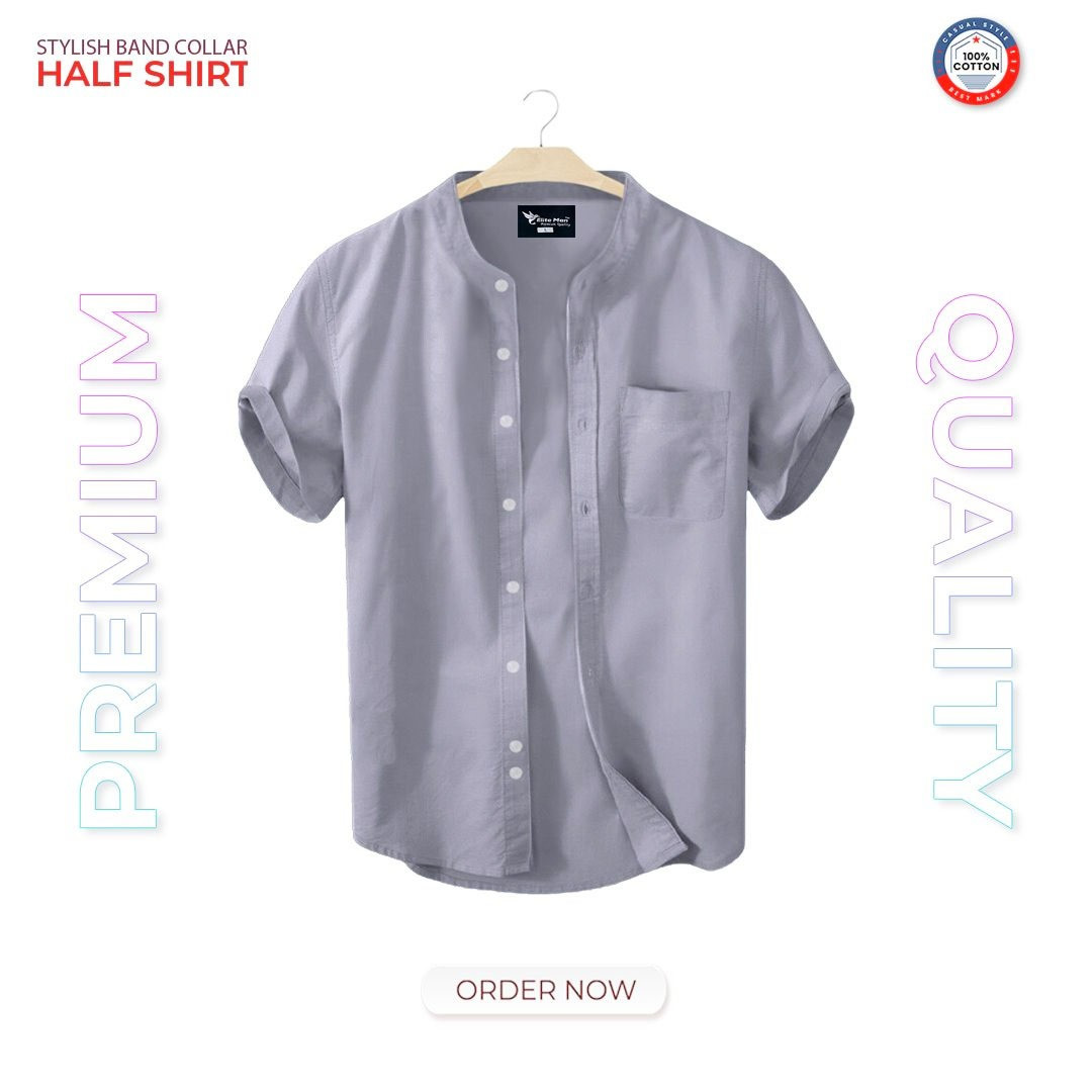 Short Sleeve Band Collar Shirt_ Ash