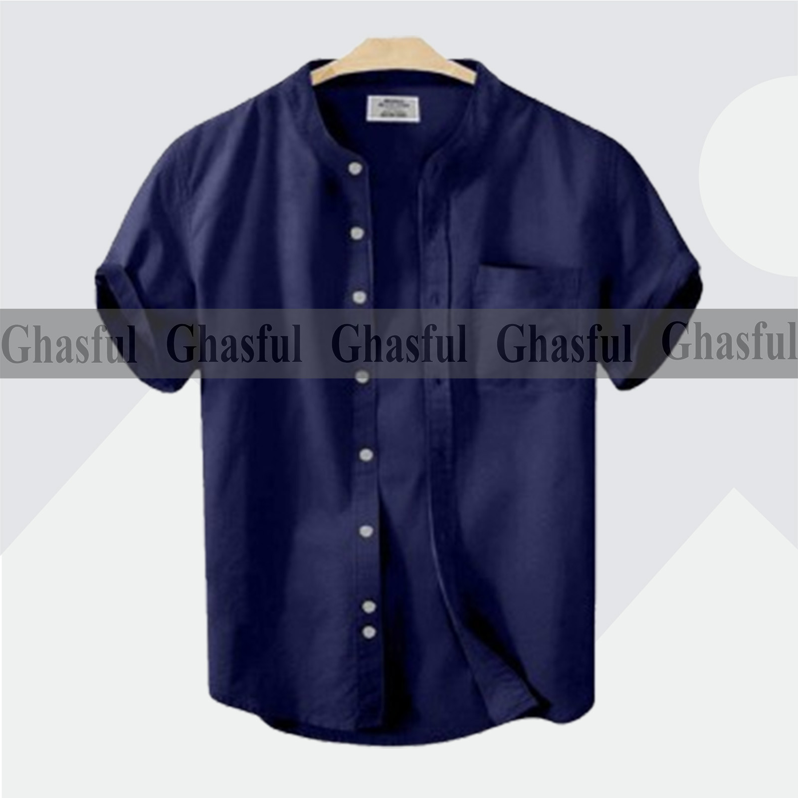 Short Sleeve Band Collar Shirt_ Nivey Blue