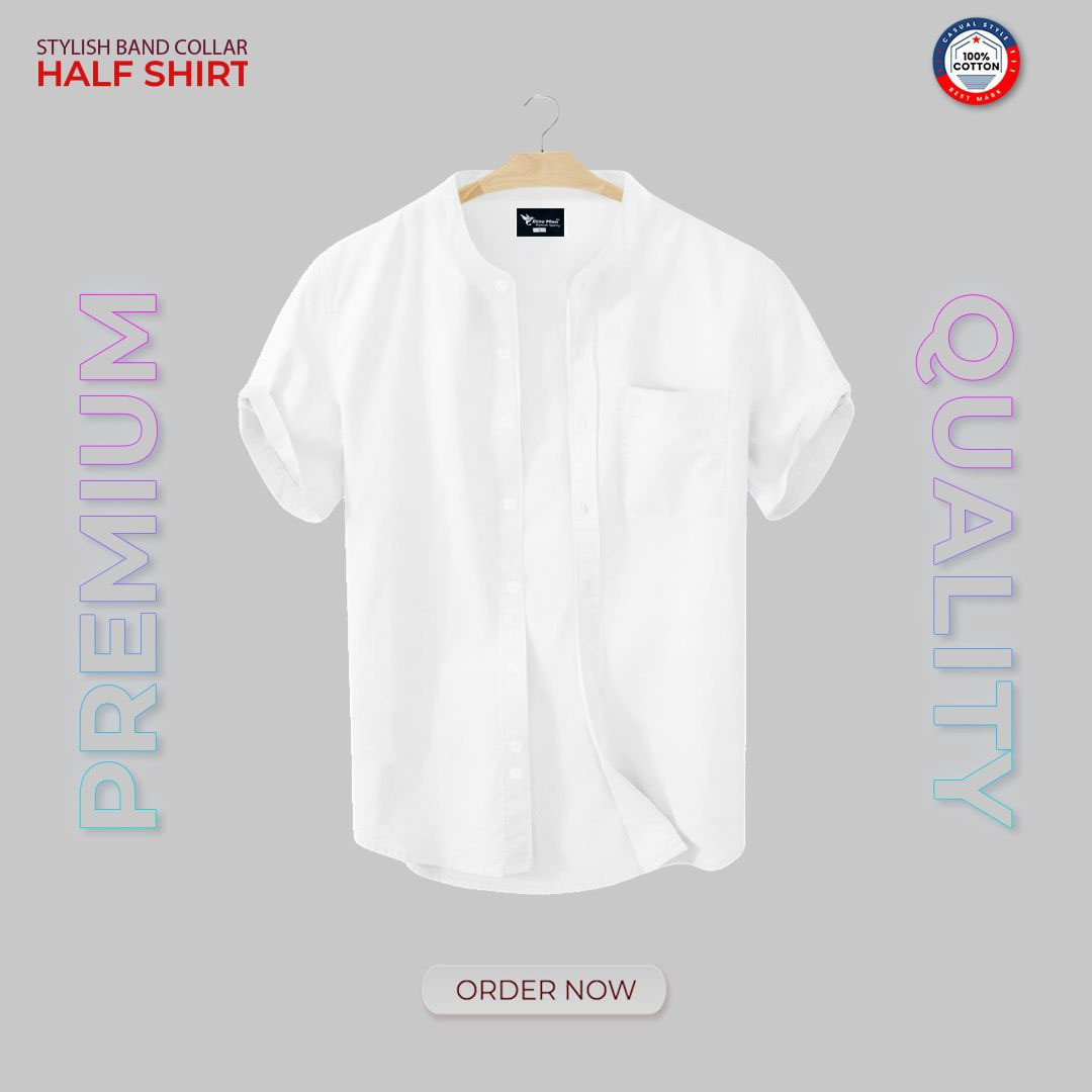 Short Sleeve Band Collar Shirt_ White